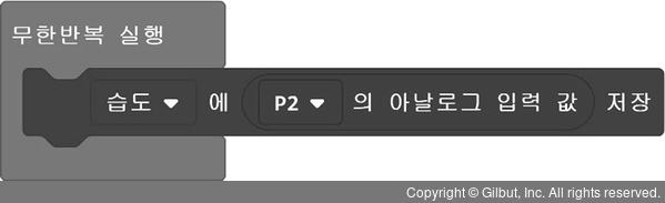 ➌ 토양 습도 센서는 2번 핀에 연결했으므로 P0의 아날로그 입력 값 블록의 ‘P0’를 P2로 바꿉니다.