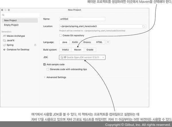 그럼 새 프로젝트를 만드는 것부터 시작해 보자. IntelliJ에서 File > New > Project를 선택하여 새 프로젝트를 생성하면 다음 창이 열린다.