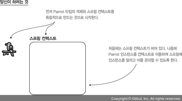 ▲ 그림 2-7 먼저 개체 인스턴스와 빈 스프링 컨텍스트를 만든다