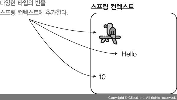 ▲ 그림 2-10 스프링 컨텍스트에 어떤 객체든 추가하여 스프링이 인식하게 할 수 있다