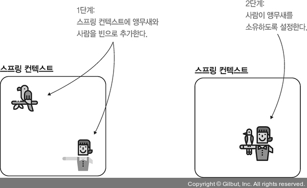 1. 2장에서 배운 대로 스프링 컨텍스트에 사람과 앵무새 빈을 추가한다.