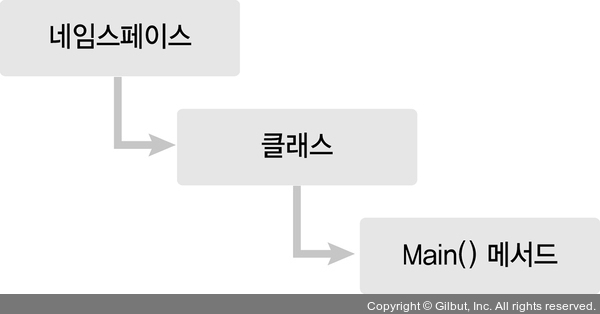 C#은 네임스페이스, 클래스, Main() 메서드로 구성됩니다.