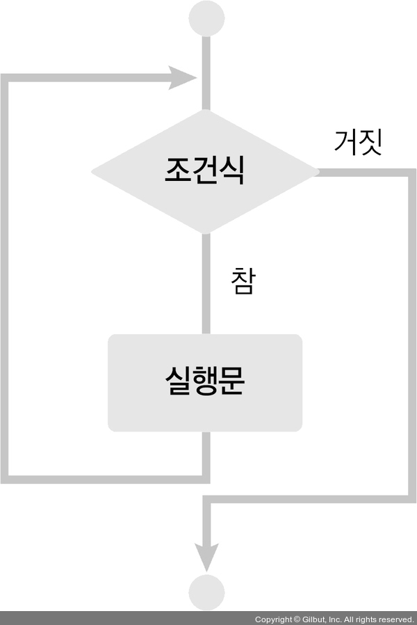 while 문을 사용하여 조건을 만족하는 동안 반복 실행하는 의사 코드
