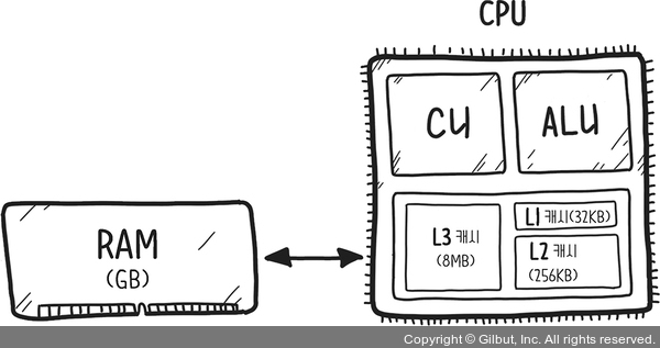 프로세서에는 L1, L2, L3 이렇게 세 가지 레벨의 캐시가 있다. L2 캐시와 L3 캐시는 다음에 필요한 데이터와 명령이 무엇인지 예측하고, 이를 RAM에서 L1 캐시로 읽어와 프로세서가 바로 사용할 수 있도록 한다. 캐시 레벨의 숫자가 클수록 저장 용량은 커지고, 전송 속도는 느리다. L1 캐시는 프로세서와 가장 가까이 있는 캐시다. 여러 레벨의 캐시 덕분에 프로세서는 메모리에서 데이터가 전송되기를 기다리며 시간 낭비하지 않고 더 많은 일을 할 수 있게 되었다.