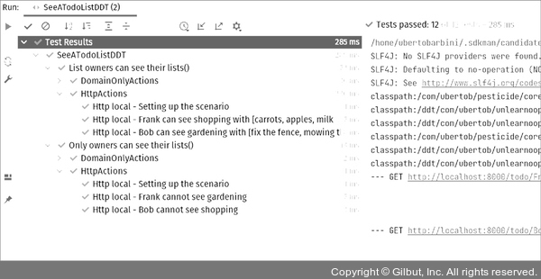 각 단계는 프로토콜에 따라 그룹화한 서로 다른 테스트로 표시되며, 단계 중 하나를 더블 클릭하면 IDE가 해당 코드로 바로 이동한다. 테스트 이름의 해시가 실제 목록과 항목 이름으로 대체되었다는 사실을 확인하라.