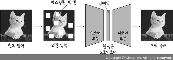 ▲ 그림 2-4 마스킹된 이미지를 재구성하는 마스크드 오토인코더