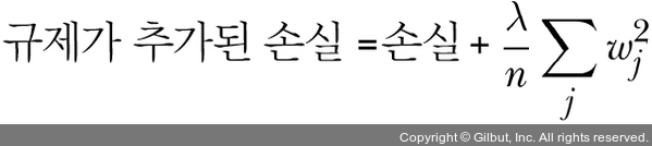 여기에서 λ는 규제 강도를 조절하는 하이퍼파라미터입니다.