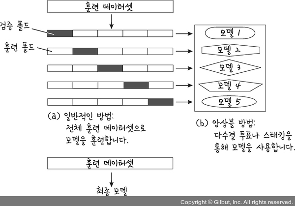 ▲ 그림 6-3 k-폴드 교차 검증으로 앙상블 모델을 만들기