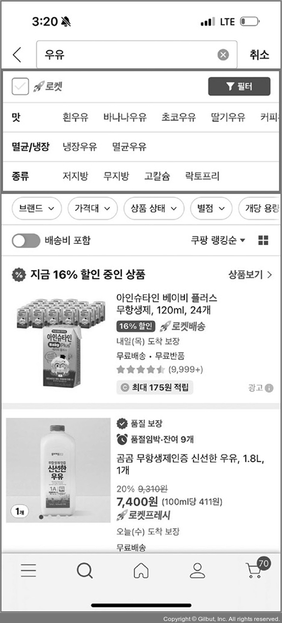 ▲ 그림 1-1 쿠팡 앱의 ‘검생 상단 노출 필터’ 예