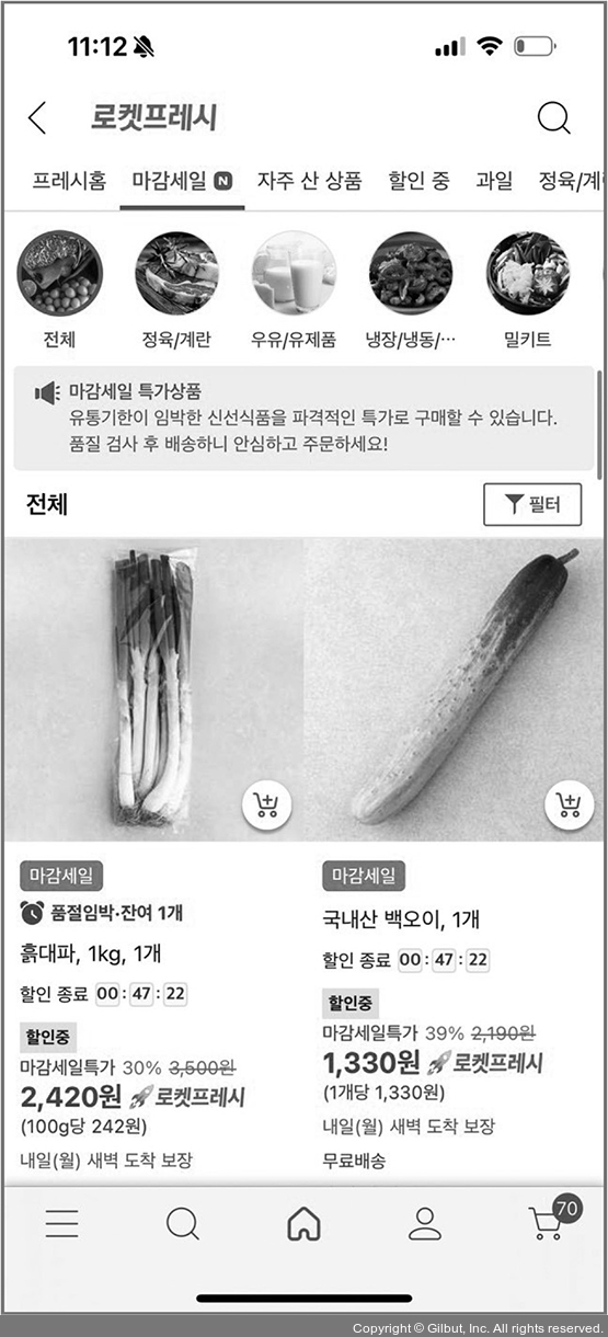 ▲ 그림 3-3 쿠팡에서 폐기를 줄이려고 마감임박 제품을 할인 판매하는 예