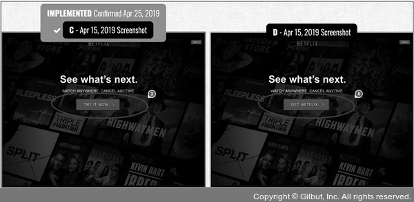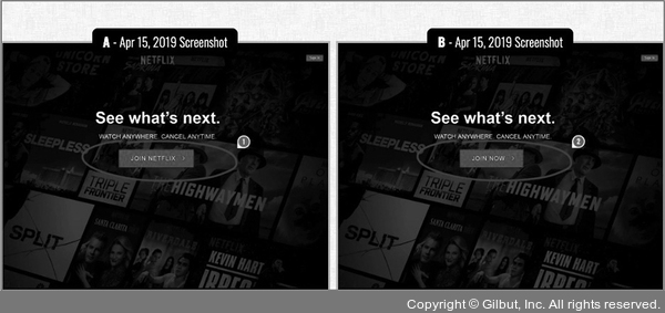 ▲ 그림 4-1 넷플릭스의 가입 문구 변경 AB 테스트 예(출처: https://goodui.org/leaks/netflix-a-b-tested-these-4-button-labels-with-join-now-possibly-leading/)