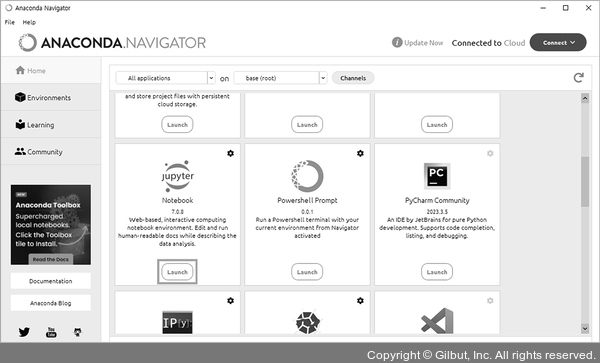 그림 2-12 아나콘다에서 주피터 노트북 실행