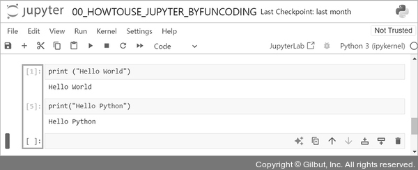 실행 후, 자동으로 새로운 셀이 셀 아래에 추가됩니다. 새로 추가된 셀은 다음 작업을 계속 이어갈 수 있도록 준비된 상태입니다.