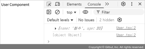 그림 3-11 User 컴포넌트에 전달된 데이터 확인