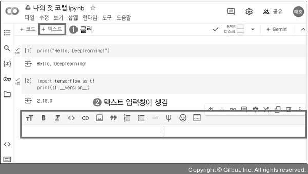 이 글을 쓰는 시점의 구글 코랩의 텐서플로 버전은 2.18.0입니다. 텐서플로의 버전에 따라 실행 결과나 특성이 조금씩 달라질 수 있습니다.