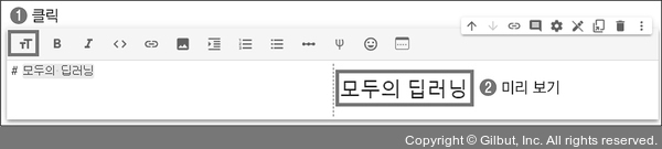 를 클릭하면 # 기호가 추가되면서 앞서 입력한 글씨의 크기가 변하는 것을 볼 수 있습니다.