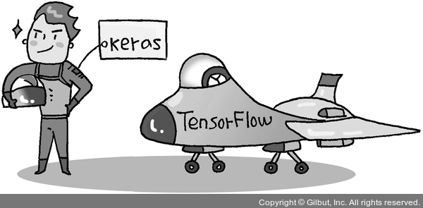 텐서플로가 목적지까지 이동시켜 주는 비행기라면 케라스는 조종사에 해당합니다. 케라스를 활용하면 딥러닝의 거의 모든 작업을 쉽게 처리할 수 있습니다.