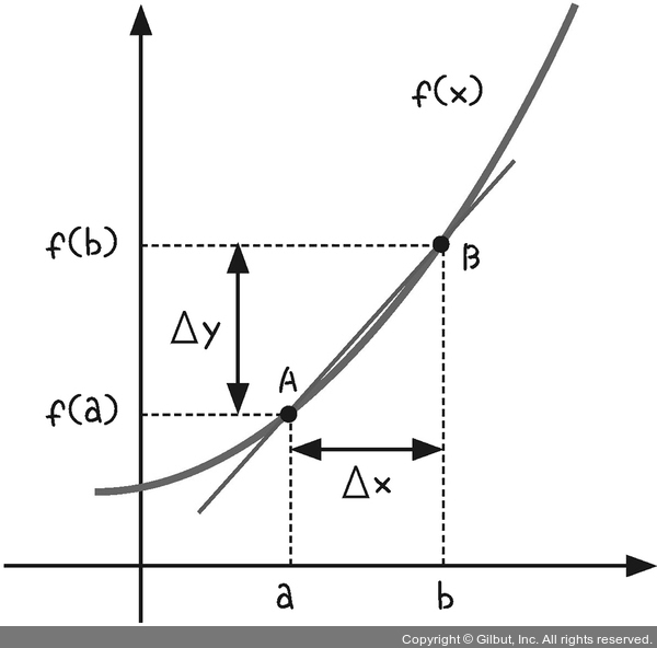 그림 3-6 | A와 B를 지나는 직선은 이 두 점 간의 기울기, 곧 평균 변화율을 의미