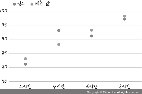| 공부한 시간, 성적, 예측 값을 좌표로 표현