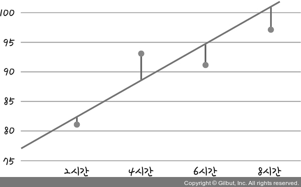| 임의의 직선과 실제 값 사이의 거리