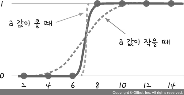 그림 6-3 | a 값이 클 때와 작을 때의 그래프 변화