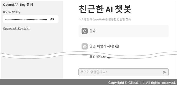 질문을 하면 친근하게 대답하는 AI 챗봇으로, 대답에 어울리는 이모티콘도 같이 보여줍니다. 이 프로그램에서는 API를 이용한 채팅 기능 구현 방법을 알아봅니다.