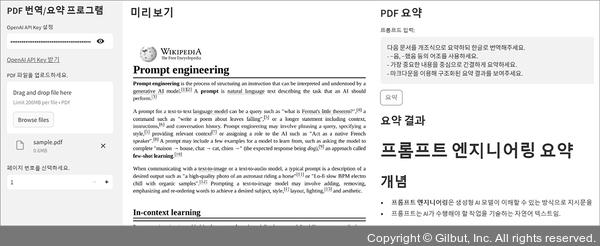 영어로 작성된 PDF 문서를 업로드하면 문서를 번역 및 요약해주는 AI 프로그램으로, 앞서 소개한 두 가지 프로그램보다 한 단계 발전된 형태입니다. 이 프로그램에서는 PDF 문서를 업로드하는 기능과 업로드한 PDF 문서에서 텍스트를 추출해 활용하는 방법을 알아봅니다.