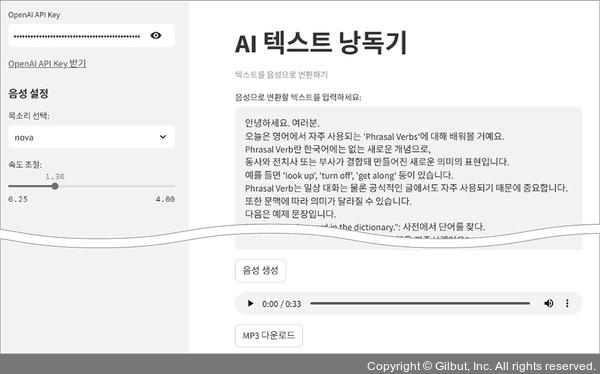 텍스트를 입력하면 정확한 발음으로 읽어주는 AI 낭독기로, 영어·일본어·중국어 등 언어를 가리지 않고 어떤 단어든 자연스럽게 읽습니다. 이 프로그램에서는 음성 재생 프로그램 구현 방법을 알아봅니다.