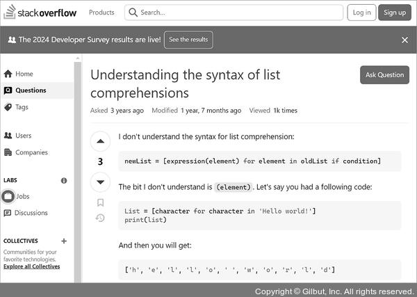 그림 1-12 코딩 질의응답 커뮤니티의 파이썬 관련 질문과 답변(출처: stackoverflow.com)