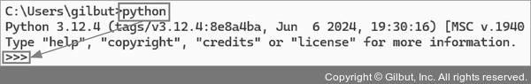 간단한 코드를 작성하고 실행해봅시다. 윈도우에서는 명령 프롬프트에 python을 입력한 후 Enter를 누르고, 맥OS에서는 터미널에 python3을 입력한 후 Enter를 누릅니다. 그러면 >>>기호가 나오는데, 이는 지금부터 파이썬 코드를 실행할 수 있는 환경이 준비됐다는 뜻입니다.