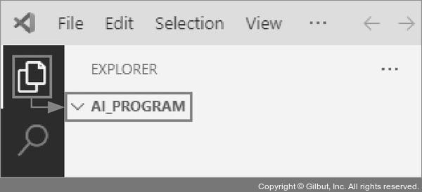 화면 왼쪽의 탐색기에 ai_program 폴더가 추가됩니다. 만약 탐색기가 보이지 않으면 왼쪽 바의 첫 번째 아이콘(Explorer)을 클릭하세요.