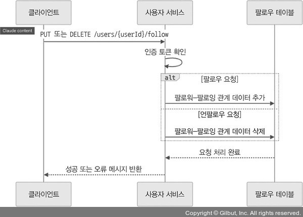 ▲ 그림 11-9 팔로우/언팔로우 과정을 나타내는 시퀀스 다이어그램