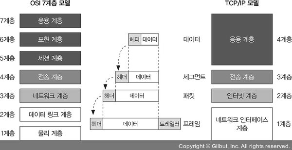 그림 1-2 OSI 7계층 모델과 TCP/IP 모델 비교
