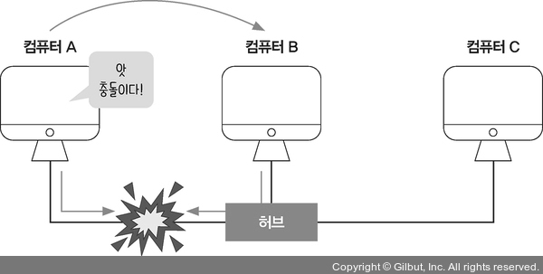 반면 더미 데이터를 보내고 나서 충돌 신호가 감지되지 않으면 네트워크는 비어 있는 상태이므로 네트워크를 사용해도 된다는 뜻입니다.