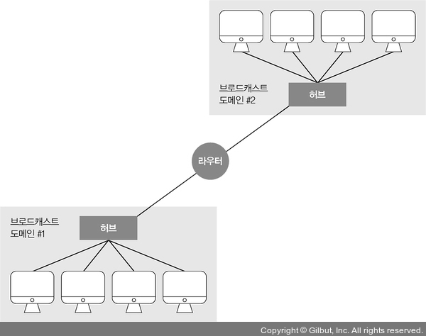 만약 라우터가 브로드캐스트 메시지를 다른 네트워크로 전달하면 네트워크 트래픽이 과도하게 증가해 네트워크 전체의 성능이 저하될 수 있고 보안 문제도 일어날 수 있습니다. 따라서 라우터로는 브로드캐스팅하지 않습니다. 라우터에 대해서는 다음 장에서 자세하게 알아보겠습니다.
