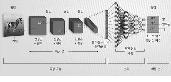 CNN은 크게 합성곱 계층, 풀링 계층, 완전 연결 계층으로 구성됩니다.