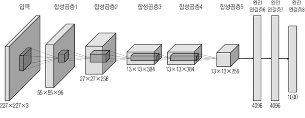 2000년대에 들어서면서 데이터의 폭발적 증가와 GPU의 발전은 CNN이 대규모 데이터셋을 학습할 수 있는 환경을 제공했습니다. 2012년, CNN을 기반으로 한 알렉스넷(AlexNet)이 이미지넷(ImageNet) 대회에서 우승하면서 심층 신경망의 성능이 주목받기 시작했습니다. 알렉스넷은 5개의 합성곱층과 3개의 완전 연결층으로 구성된 구조로, 데이터의 공간적 패턴을 잘 학습하는 특성을 보여주었습니다. 이 대회에서 알렉스넷이 거둔 성공은 많은 연구자와 기업이 딥러닝 연구에 적극적으로 참여하는 계기가 되었습니다.