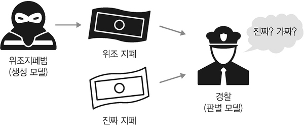 알기 쉽게 설명하면, 위조지폐범과 경찰의 대결로 비유할 수 있습니다.
