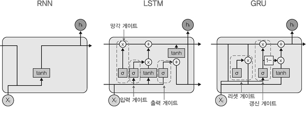 ▲ 그림 1-44 RNN, LSTM, GRU 구조