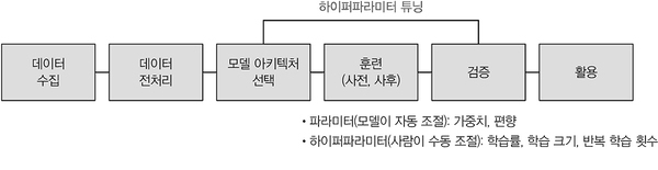 파라미터는 크게 모델이 학습할 때 자동으로 설정되는 파라미터와 사람이 수동으로 설정하는 하이퍼파라미터로 나뉩니다.