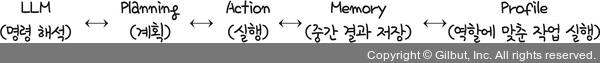 ‘LLM’은 주어진 명령을 분석하고 이를 하위 작업으로 세분화합니다. 이때 ‘계획’이라는 모듈이 사용되는 것이죠. 예를 들어 사용자가 ‘웹사이트에서 데이터를 수집하고 보고서를 작성해줘’라고 명령하면, ‘계획’은 수집 → 분석 → 보고서 작성 단계로 작업을 세분화합니다.
