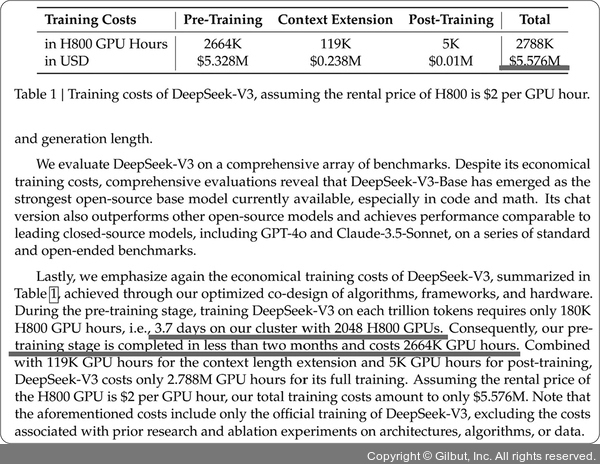 이것이 무엇을 의미하는지 메타에서 개발한 Llama3와 비교해보겠습니다. 메타의 최신 거대 언어 모델인 Llama3는 NVIDIA의 24,000개 H100 GPU를 사용하여 훈련되었으며, 총 예산은 5,000만 달러(약 557억 원)로 추정하고 있습니다. 이는 DeepSeek-V3 훈련 비용의 약 10배에 해당합니다.