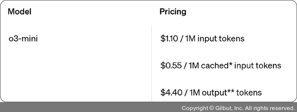 DeepSeek-Reasoner는 어떨까요? DeepSeek-Reasoner는 추론 모델로 OpenAI의 o3-mini와 비교할 수 있습니다. OpenAI에서 제공하는 o3-mini의 가격은 다음과 같습니다.