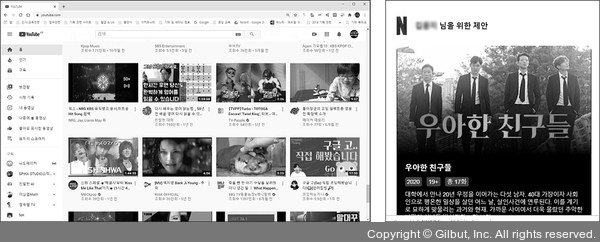그림 2-1 유튜브, 넷플릭스 등 알고리즘이 추천한 콘텐츠