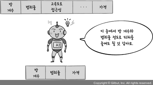 그림 2-8 집값을 예측하는 데이터의 피처를 줄이는 과정