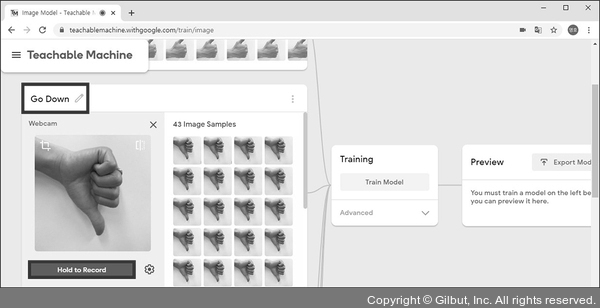 6 이번에는 Class 2에 ‘Go Down(‘아래로 내려가자’는 의미)’을 입력하고 웹캠 아이콘(