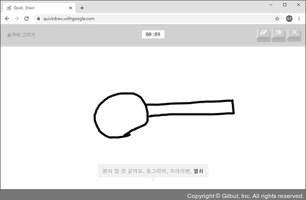 다음 그림과 같이 그렸는데 인공지능이 ‘동그라미’, ‘프라이팬’, ‘열쇠’라고 하네요. 좀 더 자세히 그립니다.