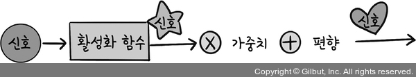 이와 같이 신호 세기는 가중치, 편향에 따라 계속하여 변경됩니다.