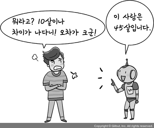 35살을 25살이라고 예측한다면 어떨까요? 물론 그 인공지능을 사용한 사람은 기분은 좋을지 모르지만, 이 인공지능을 올바른 인공지능이라고 할 수 있을까요? 그렇지 않을 것입니다. 무려 10살이라는 차이가 있기 때문이죠. 그리고 35살을 45살이라고 예측하면 이 또한 10살이라는 오차가 생기게 됩니다.