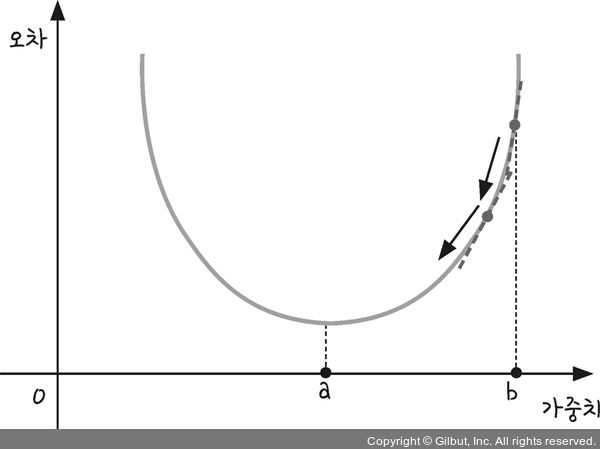 ■ 기울기로 가중치 값을 변경하는 경사 하강법
